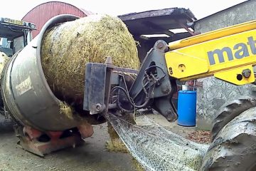 Ronde balen kuilgras voeren met een balenfrees in Engeland. Dave Wuz Here