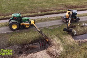 Loonbedrijf Wilgenburg aan het duikers doorspuiten met een CAT M315F kraan. John Deere 6215R met een Wesseler TiTAN 8500T maaiarm met een baggerspuit John Deere 6R 185 met een Jako watertank. Trekkerfotografie Agriculture Video’s