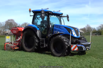 Grasland doorzaaien door loonbedrijf Jan van Norel uit Doornspijk bij Kaasboerderij Van Zeeburg. • New Holland T5.110 met een Güttler GreenMaster doorzaaimachine. Agriculturespotter