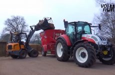 Koeien voeren met een Steyr Multi 4100 trekker met een Trioliet Solomix 2-1200 voermengwagen. VolmerFilm