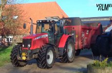 2026 – Compost verspreiden op het grasland door Dubbelink: – Massey Ferguson 5475 tractor en Gilibert Helios 14.1 strooier (Paus). – Atlas 1404 mobiele graafmachine met bak. VolmerFilm
