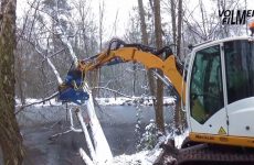 2026 – Bosonderhoud door Volker Bosbouw met Mecalac 8MCR kraan met Hunter FellFlex grijperzaagkop. VolmerFilm