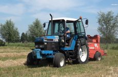 Loonbedrijf Reimink (Den Ham) bezig met het maken van kleine strobalen met hun Ford 6640 Powerstar SLE en een Welger AP 630 kleinpakpers.