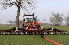 Fendt 718 aan het sleepslangen2026 net over de grens in Duitsland. Want daar mag het al. Landmaschinen und Fahrzeuge!