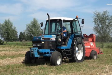 Loonbedrijf Reimink (Den Ham) bezig met het maken van kleine strobalen met hun Ford 6640 Powerstar SLE en een Welger AP 630 kleinpakpers.