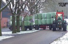 Ronde balen transport met een Fendt Vario 714 trekker en twee aanhangers. VolmerFilm