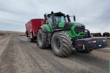 Deutz Fahr 7-, 8- en 9-serie trekers aan het werk op een feedlot in Washington USA. Deutz-Fahr America