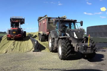 Loonbedrijf Hoekstra uit Oosterzee-Buren (Friesland). Mais hakselen met een Krone BiG X 680 en New Holland trekkers. Agriculturespotter