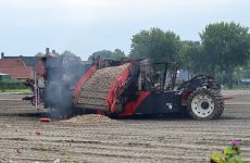 Eemskrant – Holwierde – De aardappelrooimachine die donderdagavond al in vlammen opging in een akker langs de Hogelandsterweg, heeft zaterdagmiddag opnieuw vlam gevat