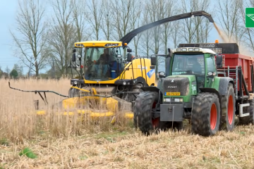 Demonstratie twee manieren van miscanthus hakselen Tussen de buien door oogstte loonbedrijf Jakobs uit het Limburgse Geijsteren afgelopen week de miscanthus van teler Eric Kroef in het Gelderse Bemmel. Nieuwe Oogst