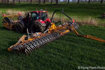 Sleepslang bemesten door Loonbedrijf R.de Regt met een Valtra T175 voorzien van een Tjalma 12 mtr brede zodebemester en Tjalma fronthaspel van Mest – en Transporthandel Kuijlen Roosendaal. Flying Pixels Photography