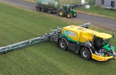 Drijfmest uitrijden in Duitsland met een splinternieuwe OXBO AT5104. Transport met John Deere trekkers. EmsAgriFilm