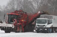 Holmer Terra Dos T 4.40 aan het bieten rooien in de sneeuw. Transport met Iveco truck. Landmaschinen und Fahrzeuge!