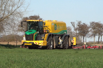 Loonbedrijf Partoens digestaat aan het injecteren met hun Oxbo AT5104 met een capaciteit van 22 kuub met daarachter een Vredo Profi 12 met een dubbele schijven, deze heeft een werkbreedte van 12 meter. Landbouw Fotografie J&J